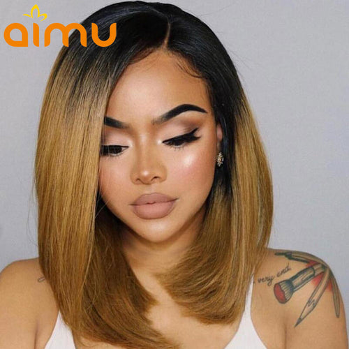 Deep Part Remy Brazilian Straight Short Cut 180% Ombre Black Honey Blonde Pre Plucked Hairline Human Hair Lace Front Bob Wigs