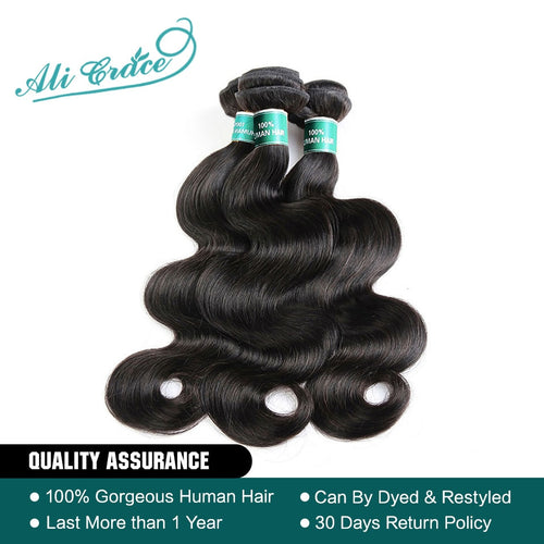 ALI GRACE Hair Brazilian Body Wave Hair 3 Bundles 100% Remy Human Hair Full Cuticle Aligned Human Hair Weaves Tangle Free