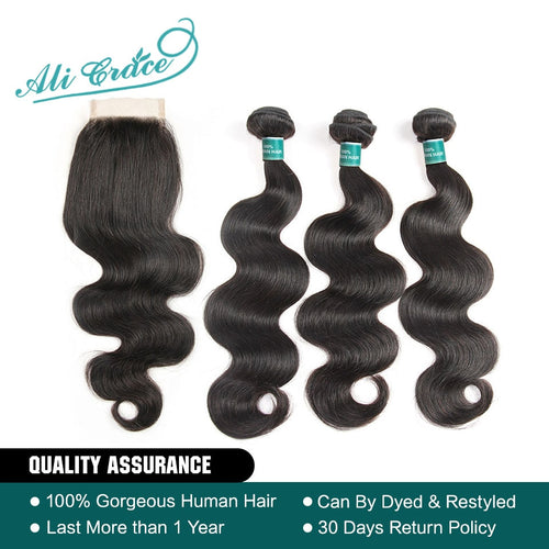 Ali Grace Hair 3 Bundles Brazilian Body Wave Hair With Closure 4*4 Free Part 4pcs/lot Remy Human Hair Extension Natural Color